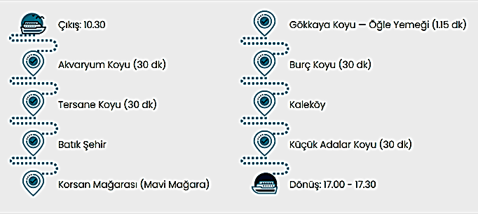 İlk defa Kekova turu yapacaklar için en uygun günlük tur rotası olarak planlanmıştır.